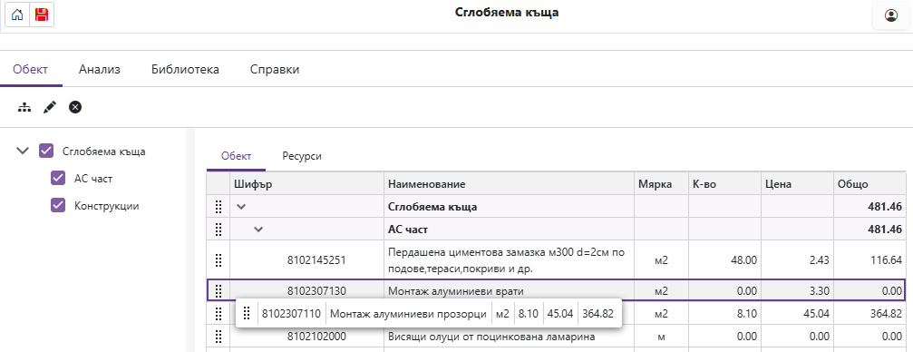 В Nefico Plan вече може да се преместват/пренареждат анализни цени и части. Тава става като с мишката се избере и задържи бутон